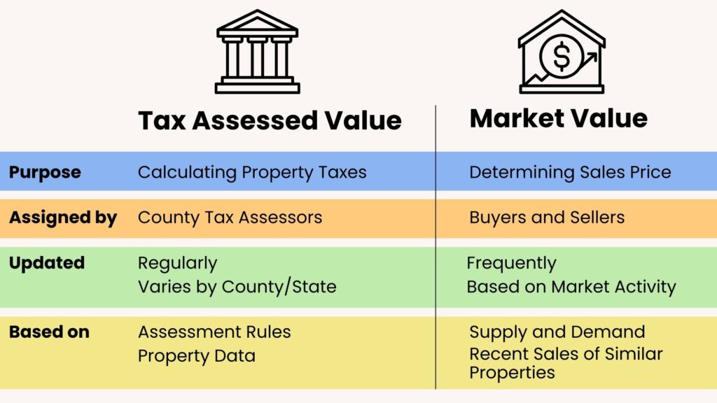 Tax assessed value is the value your local government assigns to your property to calculate property taxes. A county or municipal assessor typically determines this value using guidelines that may include: